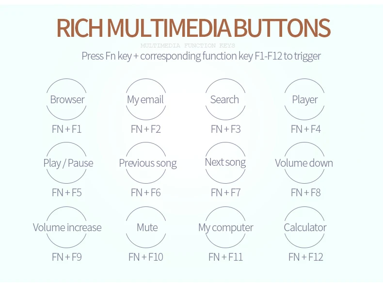 Multimídia: botões multimídia FN+F1-F12