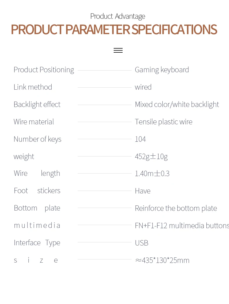 Especificações dos parâmetros do produto